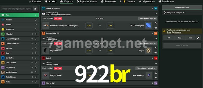 A aposta 922br oferece aos jogadores a experiência mais conveniente de apostas em eSports!